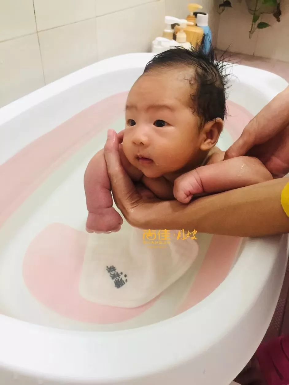 洗身体:帮宝宝脱衣服,先用温水拍一下宝宝的胸部,宝宝下水洗时,注意手滑,一定要把手托住宝宝手腋窝下,头部颈部用手婉托住,将宝宝轻轻的放入水中,先下宝宝的脚--屁股在水中慢慢晃动,依次洗腋下--双臂--手--颈部--前胸--腹股沟--双腿--脚--后背